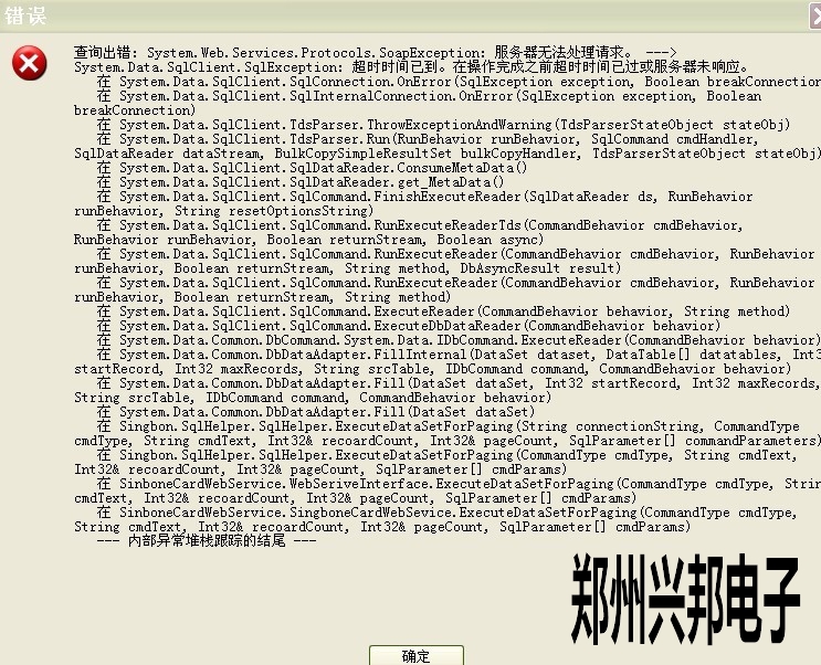 一卡通綜合管理平臺在查詢消費記錄表時出現(xiàn)如下的錯誤提示: