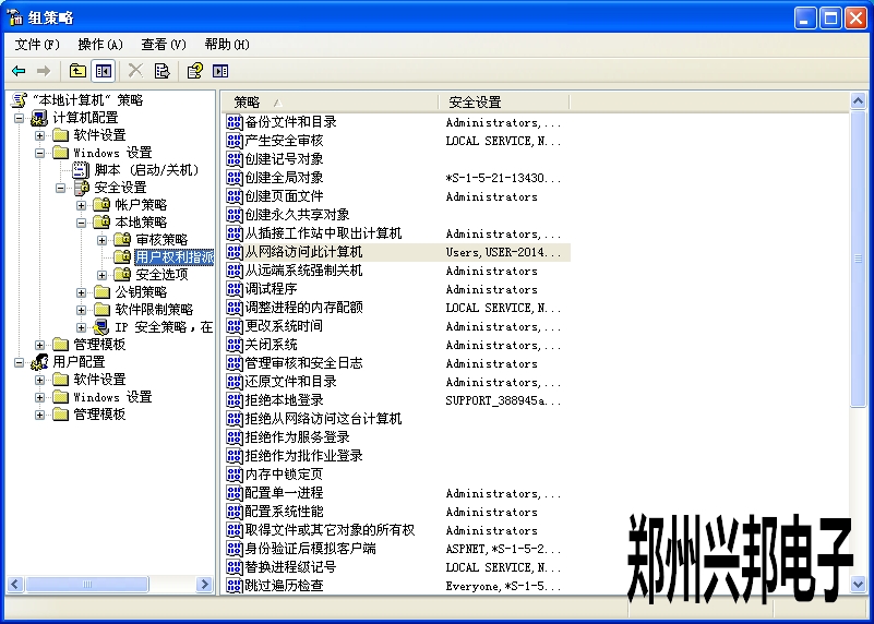 選擇“計算機配置” →“windows設(shè)置” →安全設(shè)置→“本地策略” →“用戶權(quán)利指派”打開
